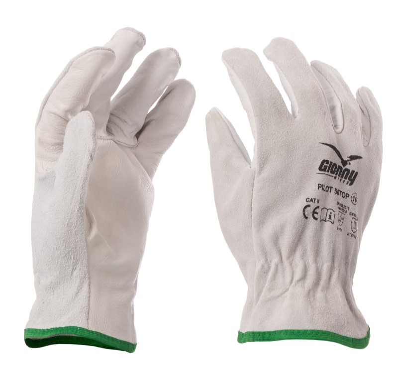 Guanto in pelle bovina palmo in fiore, dorso in crosta. Polsino bordato con elastico stringi polso.